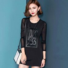 短袖卡通印花中长款T恤女韩范百搭显瘦加长体恤裙套头宽松连衣裙