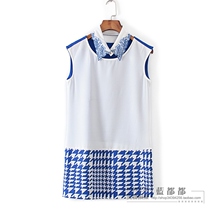 10清仓剪标村系列夏装正品女装宝蓝色装饰领中长款雪纺衫 23397
