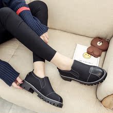2017春秋新款平底圆头补丁单鞋复古英伦学院风百搭学生小皮鞋女鞋