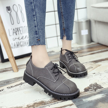 学院风英伦风女鞋复古牛津鞋圆头系带小皮鞋布洛克厚底单鞋女平底