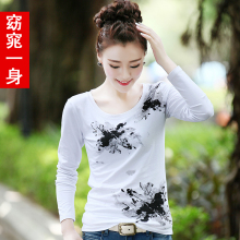 2017夏季民族风印花长袖T恤女修身打底衫小衫女士夏装体恤上衣