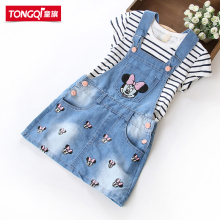 女童背带裙套装2017夏新童装韩版短袖T恤两件套中大童牛仔背带裙