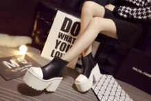 欧美大牌恨天高坡跟女鞋厚底松糕超高跟防水台单鞋
