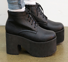 欧美英伦粗跟厚底系带厚底短靴超高跟朋克马丁靴演出女鞋女靴