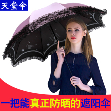 天堂伞太阳伞蕾丝黑胶遮阳伞防紫外线女防晒伞折叠伞创意晴雨伞