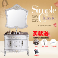 妙洁欧式浴室柜 经典落地式卫浴柜洗溯台 橡木仿古实木洗脸盆组合
