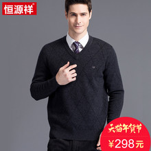 恒源祥羊毛衫男V领加厚中年针织衫厚款套头纯色男士毛衣爸爸装