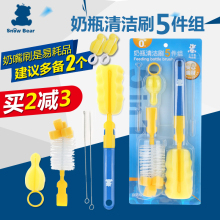 小白熊洗奶瓶清洁刷套装的海绵刷奶瓶刷奶嘴刷清洗吸管刷5件组
