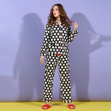 2016春秋季新款时尚波点睡衣女人纯棉长袖休闲宽松大码家居服套装