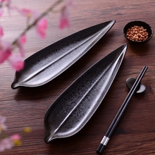 日式创意小吃陶瓷西餐盘长方形饺子菜托盘叶形寿司骨瓷碟北欧餐具
