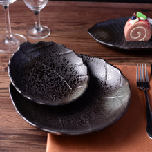 创意简约日韩黑色寿司蛋糕陶瓷酒店餐具西式餐盘北欧长方形托瓷盘