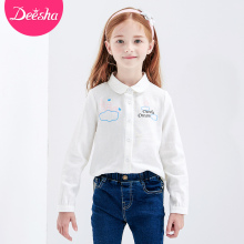 笛莎童装2017春季新款女童长袖衬衫中大童休闲棉麻儿童女装白衬衣