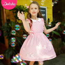 笛莎儿童装2017夏新款韩版女童连衣裙甜美印花小翻领公主背心裙子