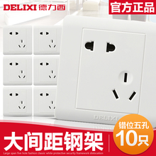 德力西开关插座10只套餐 钢架错位斜5五孔电源墙壁开关插座面板