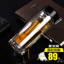 face双层玻璃杯男女便携商务水杯创意带盖过滤杯子耐热办公茶杯