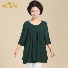 妈妈装夏装宽松雪纺衬衫女中老年女装夏装大码七分袖妈妈t恤女春