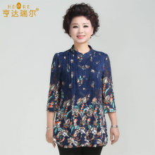 中老年女装秋装七分袖衬衫胖妈妈装春秋棉麻上衣中年妇女大码