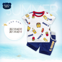 安塞尔斯夏季2017新款儿童装宝宝衣服男童卡通短袖T恤两件套装潮