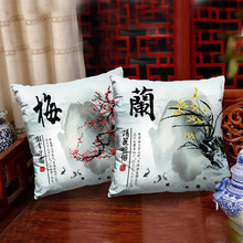 印花十字绣抱枕一对梅兰竹菊3D十字绣枕头套靠垫新款客厅沙发枕头