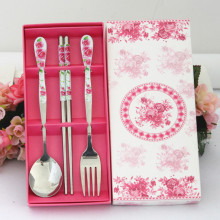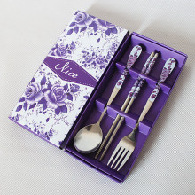 婚礼回礼商务礼品韩式勺叉 青花瓷餐具筷子不锈钢餐具精美礼盒装