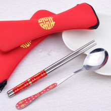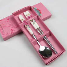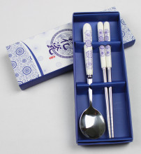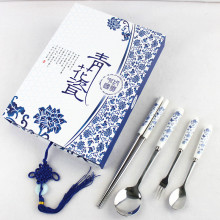 婚庆商务馈赠礼品青花瓷骨瓷勺筷两件套不锈钢餐具韩式礼品