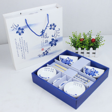 节日礼品结婚回礼碗套装青花瓷碗筷碟8件套商务乔迁婚庆实用