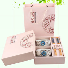 定制logo婚庆礼品釉下彩手绘陶瓷餐具套装韩式碗筷礼盒情侣碗