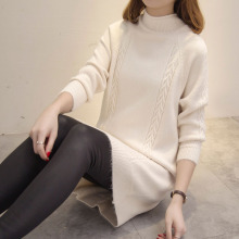 冬季新款半高领中长款显瘦针织衫2016韩版宽松套头纯色套头毛衣女