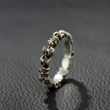 麻吉 925银骷髅头满圈细指环 男女适戴戒指 个性单身潮人关节戒
