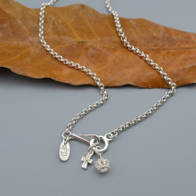 麻吉 欧美皇冠和十字架银扣 925纯银加厚细丸女士项链 素银链之6