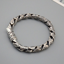 麻吉 泰银唐草纹男士手链 卷草纹复古时尚 街头潮人925纯银饰品