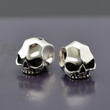 麻吉 925纯银怒目骷髅DIY佛珠手串文玩配饰三通腰珠顶珠隔珠刀坠