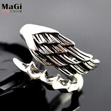 麻吉 纯银恶魔翅膀男士戒指 可调节 型男单身食指戒指 时尚个性