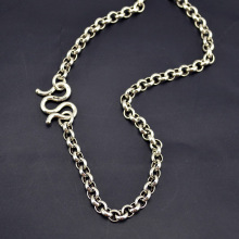 麻吉 925银加厚4.5mm圆丸项链 毛衣链50-75cm男士项链 作旧
