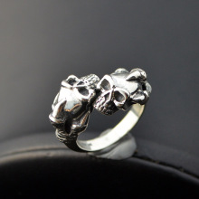 麻吉 925纯银相爱相杀双骷髅头男士戒指 开口调节大小 朋克暗黑系