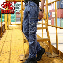 血蓝传说男士秋冬季户外休闲工装牛仔裤男多口袋 工装裤 男 长裤