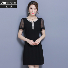 2017大码矮小个子女生chic韩风雪纺连衣裙子夏胖mm新款遮肚子显瘦