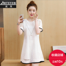 2017加肥加大码夏装女胖mm新款遮肚子宽松连衣裙雪纺衫打底衫上衣