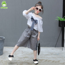 8岁女童夏装套装2017新款儿童夏季一字领短袖短裤宽松休闲两件套