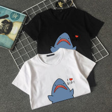 情侣装短袖上衣夏季2017新款韩版鲨鱼印花宽松学生夏装t恤女半袖