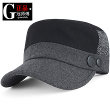 冬天保暖男士帽子冬季户外韩版潮毛呢平顶帽军帽秋冬款加厚棉帽男