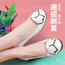 真皮中年女鞋皮鞋平底坡跟单鞋春夏低跟妈妈鞋中老年人软底休闲鞋