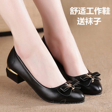女士中跟皮鞋浅口单鞋春夏软底粗跟中年妈妈鞋低跟工作鞋防滑女鞋