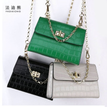 法迪熊2017新款牛皮链条包小方包时尚鳄鱼纹女包甜美淑女小包韩版