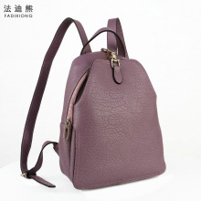 法迪熊2017新款双肩背包时尚粉紫色休闲女包韩版纯色牛皮女式包