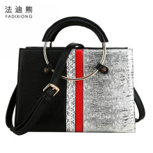 法迪熊2017新款真皮女包时尚手提包撞色蛇纹牛皮单肩斜挎女士包