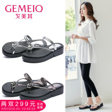 戈美其2017夏季新款人字拖复古水钻休闲拖鞋松糕底女鞋子时尚凉拖