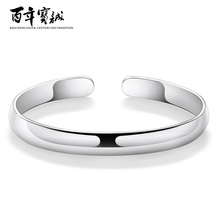 宝诚 圆条光面足银手镯999纯银男女情侣银手环开口纯银镯子可刻字