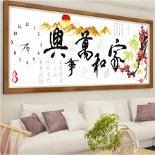印花十字绣线绣家和万事兴新款客厅卧室简约现代小幅钟表立体绣