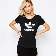ADIDAS阿迪达斯T恤女2017夏季新款三叶草运动上衣 黑色 休闲百搭